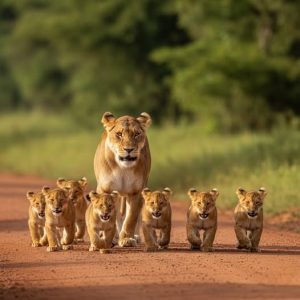 The Strength of a Mother THE STRENGTH OF MATERNAL LOVE – THE HEART OF THE PRIDE Amid the vast expanse of the African savanna, where...