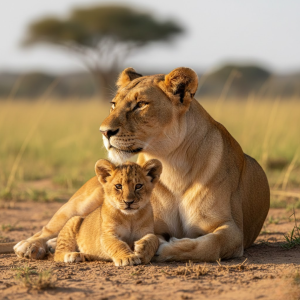 Against the beautiful, open savanna, this photo perfectly captures the balance of power, tenderness, and familial bond in the wild. It’s a beautiful display of the entire lion family unit, full of love and future kings and queens!