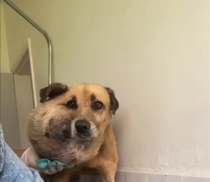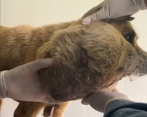 When the rescue team arrived, they immediately recognized the seriousness of the situation. The swelling on the dog’s face was not a simple injury. After a brief examination, they suspected a severe infection or a large tumor that had been growing untreated for a long time. Time was critical. The dog was quickly transported to a veterinary hospital, where further tests would determine whether he could be saved.
